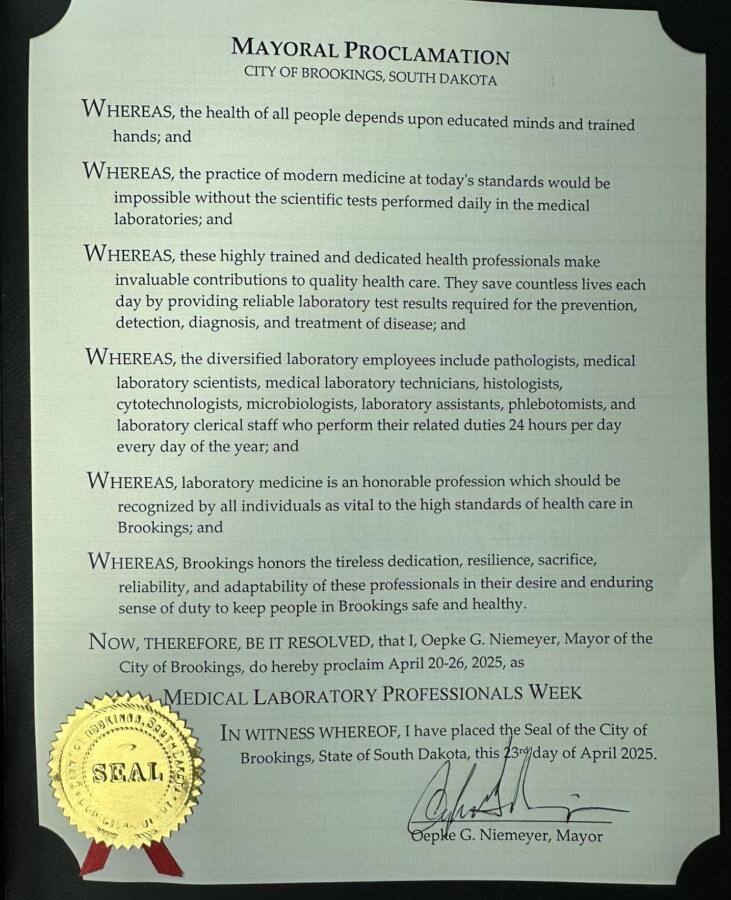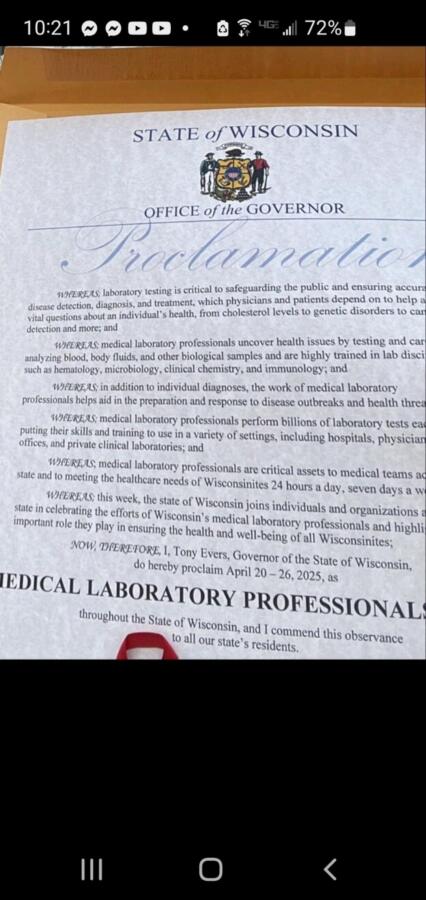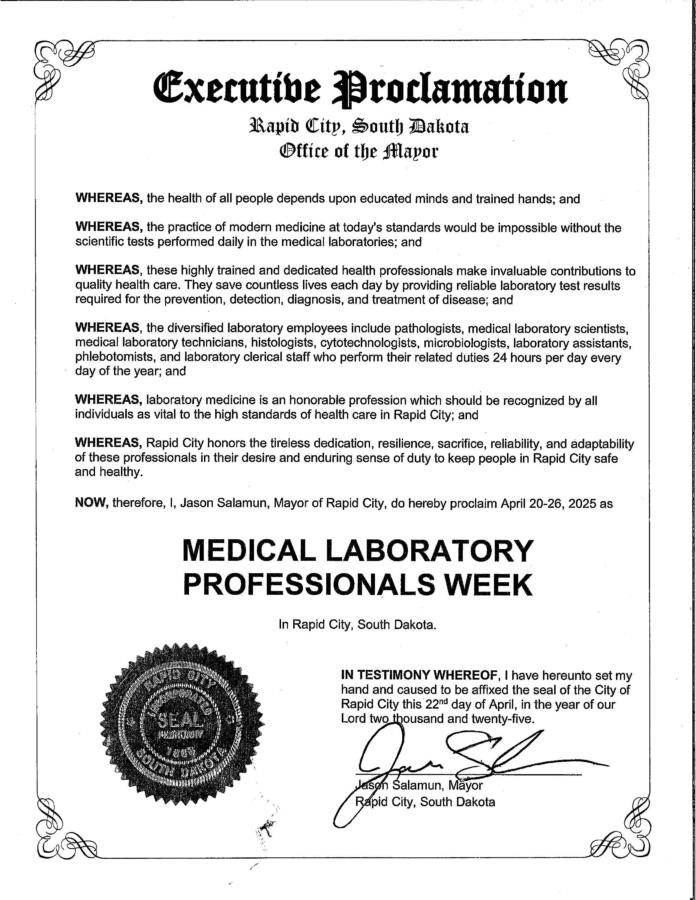 2. When you contact the official’s office, say that you wish to speak with someone about requesting that the mayor or governor sign a proclamation for Medical Laboratory Professionals Week, which typically occurs the last week in April.