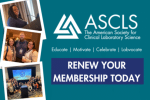 For those of you who have not yet renewed, notices will arrive by mail in the next few weeks. Renew your membership by July 31 to ensure access to your membership benefits, stay connected to your community of medical laboratory professionals, and to maintain your continued membership status. Thank you for your support of ASCLS, and we look forward to another year to educate, motivate, celebrate, and labvocate with you.