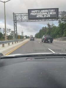 In addition, I facilitated signage with the Lake Pontchartrain Causeway—the longest bridge over water in the United States at 24 miles. With approximately 300,000 commuters crossing the causeway daily, getting Lab Week recognized on their digital display screens meant major exposure for our profession.