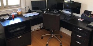 | Author Scott Aikey invested in the physical hardware necessary to create a home office space that is defined and conducive to working remotely. |
